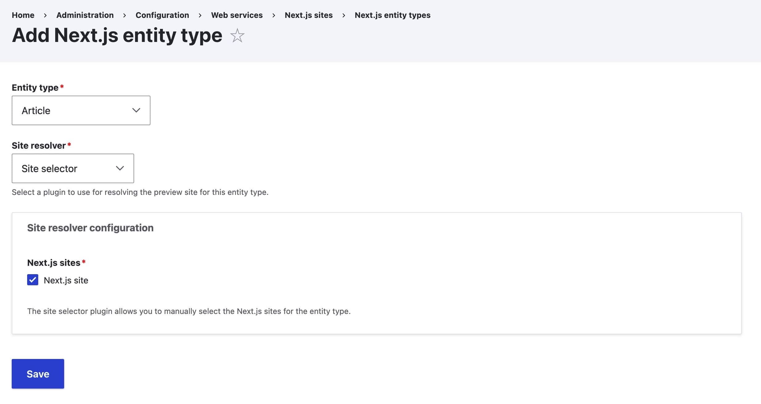To enable content draft inside Drupal, we need to configure a site resolver for the Article content type.